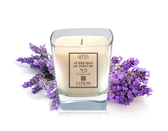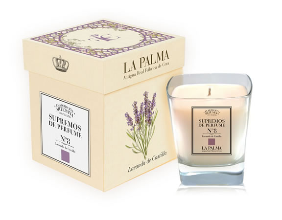 Vela de Supremo de Lavanda Castellana. Elegancia natural y belleza campestre. Vela de 280 grs. (50 - 60 horas). Presentada en caja individual de cartón forrado. |